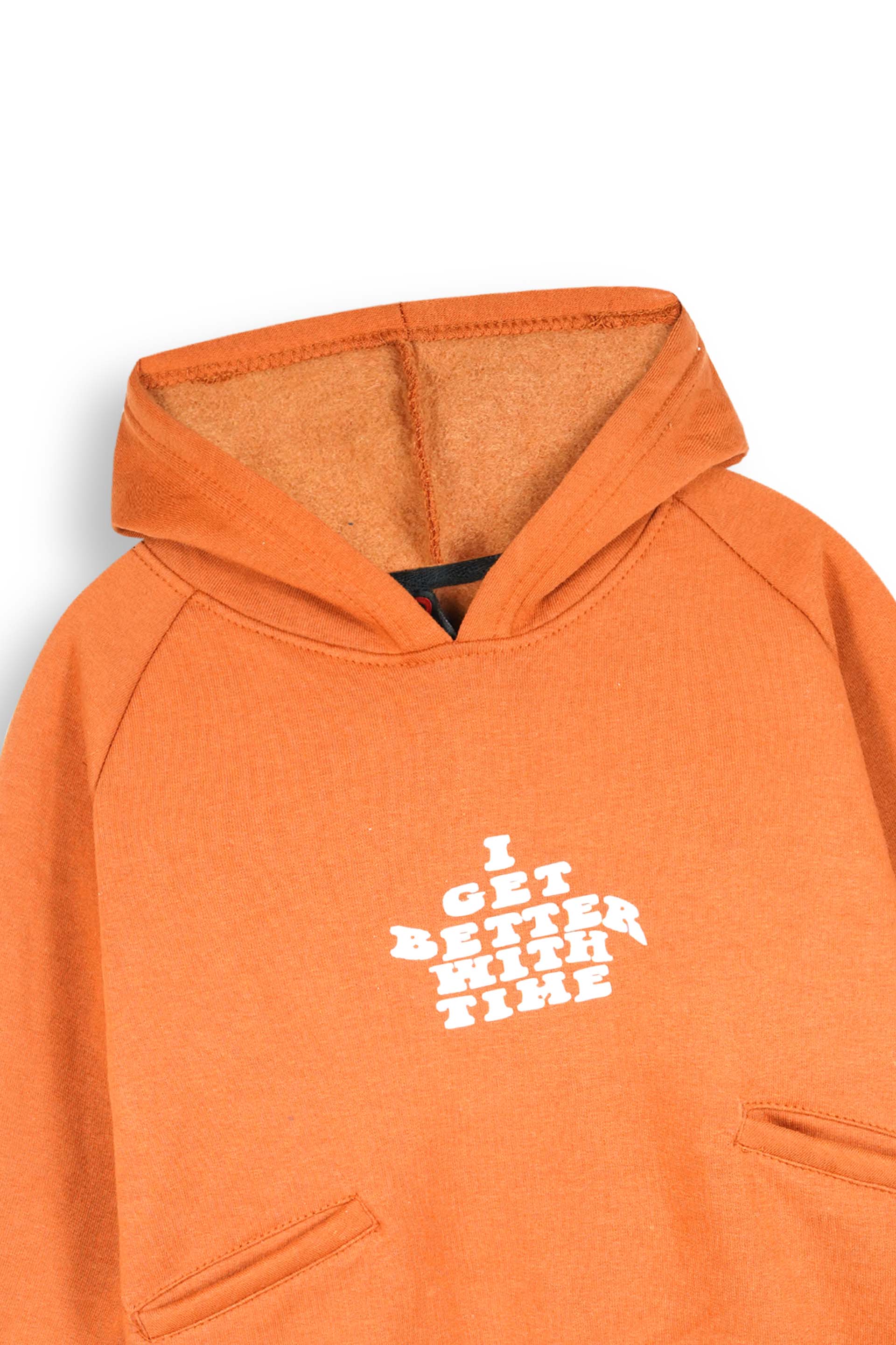 Stay warm and stylish this winter with our Burnt Orange Fleece Tracksuit, made from 100% premium cotton fleece for unbeatable comfort and softness. This trendy two-piece set includes a hooded sweatshirt with a motivational “I GET BETTER WITH TIME” print and matching fleece jogger pants, creating the perfect balance of fashion and function.