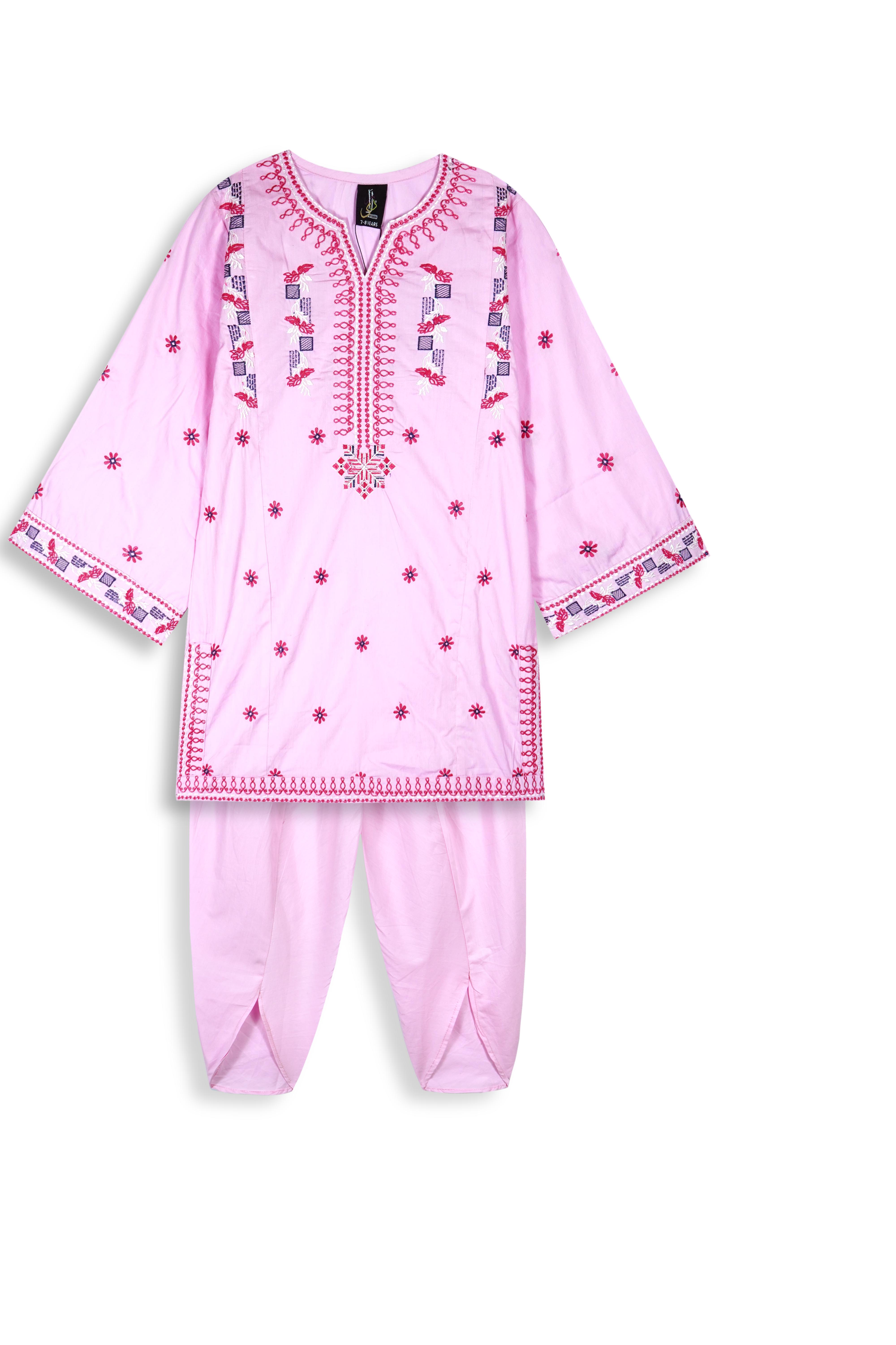 Elevate your child’s festive and casual wardrobe with this elegant girls’ Eastern wear set. Crafted from premium cotton fabric, this 3-piece suit features a beautifully embroidered kurta, matching trousers, and a soft net dupatta – perfect for family gatherings, Eid, and special occasions.