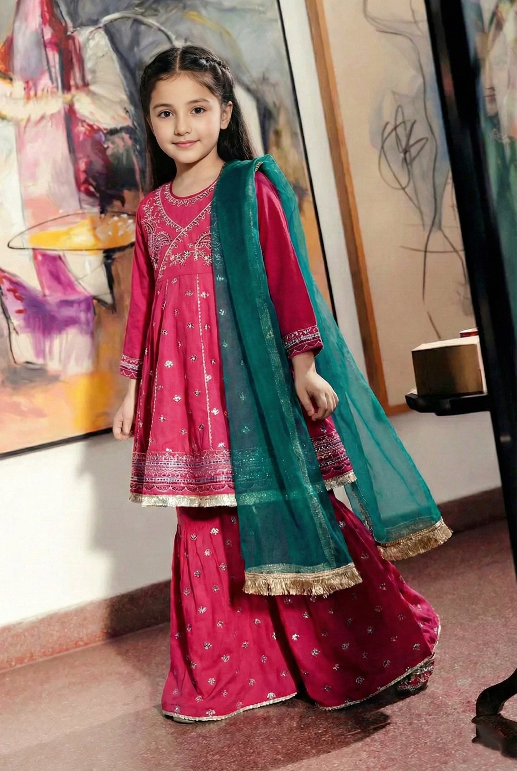 Add a touch of festive charm to your little girl’s wardrobe with this beautifully designed Girls Cotton Ethnic Wear Suit. Crafted from premium-quality breathable cotton, this outfit ensures all-day comfort while keeping the look elegant and traditional.