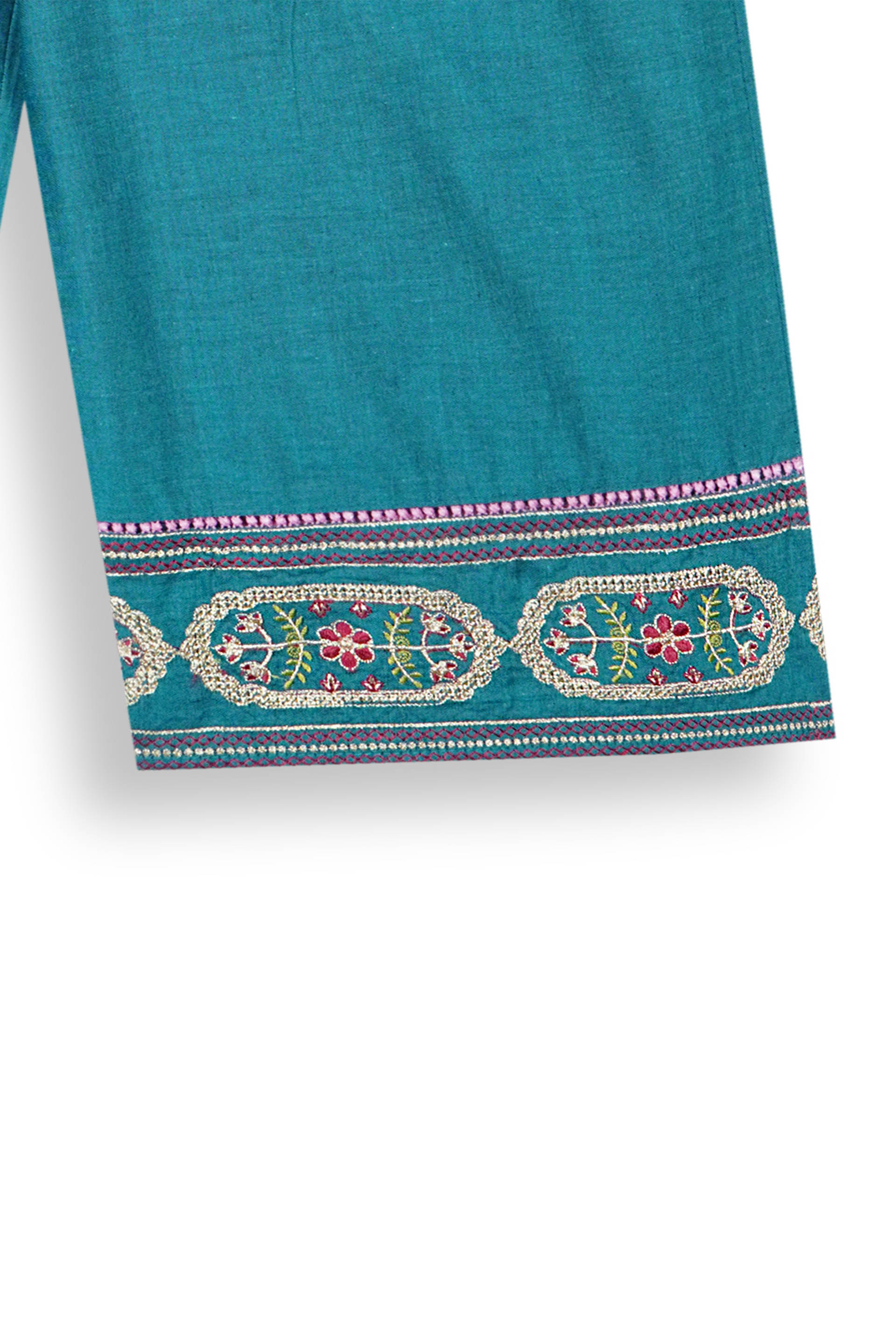 Multihead Embroidery – intricate threadwork on neckline, sleeves, hemline, and trouser border for a luxurious finish