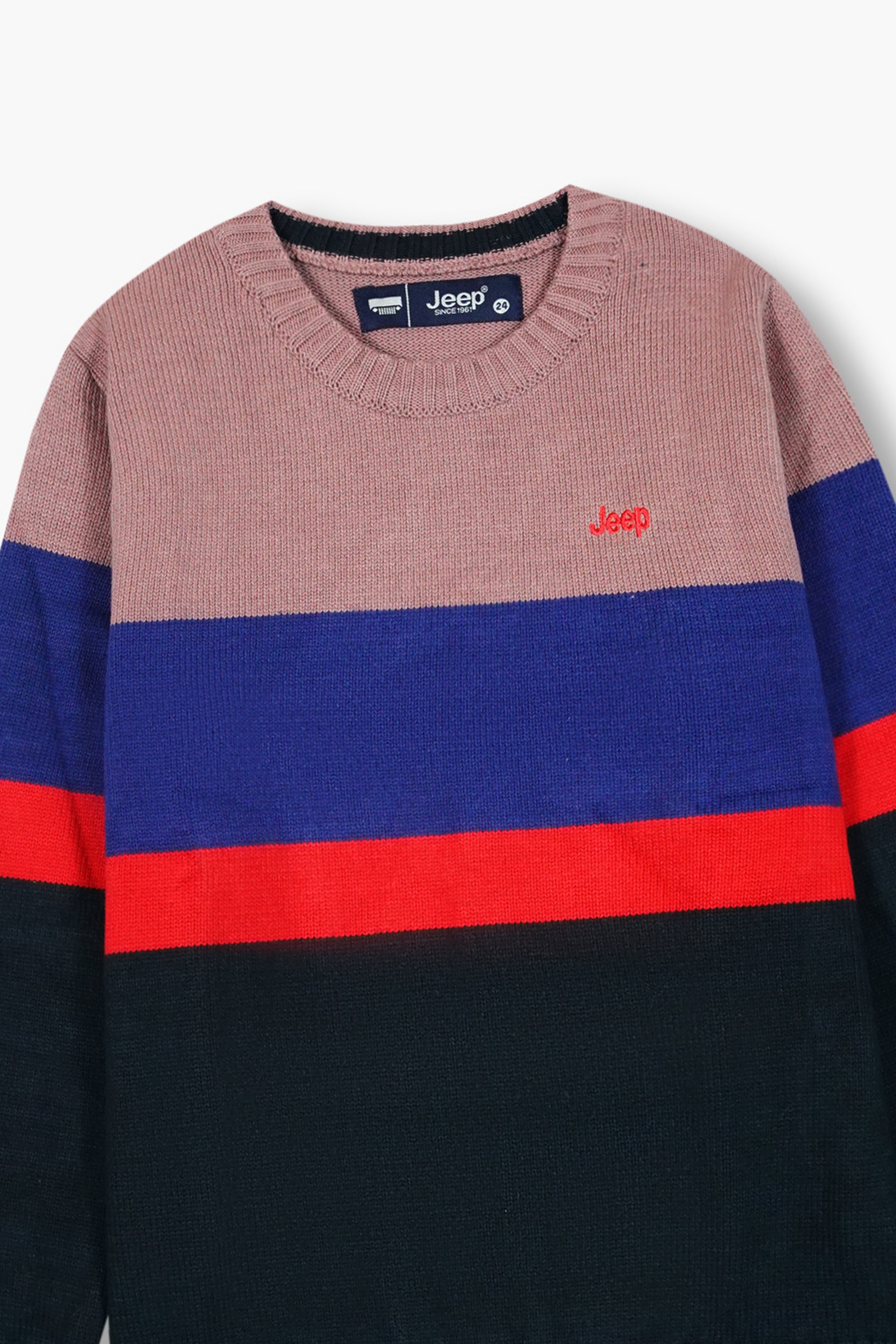 Add a pop of color to your child’s winter collection with this Jeep Color Block Cotton Sweater, made from 100% premium cotton for unmatched comfort and warmth. The trendy color block design featuring brown, navy blue, red, and royal blue stripes gives it a bold, modern look that’s perfect for both casual and semi-formal winter outings.