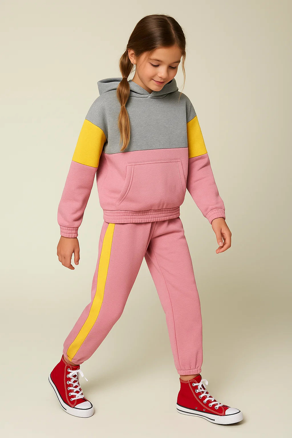 Upgrade your child’s winter wardrobe with this trendy kids hoodie and jogger set, crafted from 100% premium cotton fleece for unbeatable warmth, comfort, and breathability. Perfect for pre-winter and winter seasons, this Girls tracksuit combines style and function, making it a must-have for every little fashionista and active explorer.