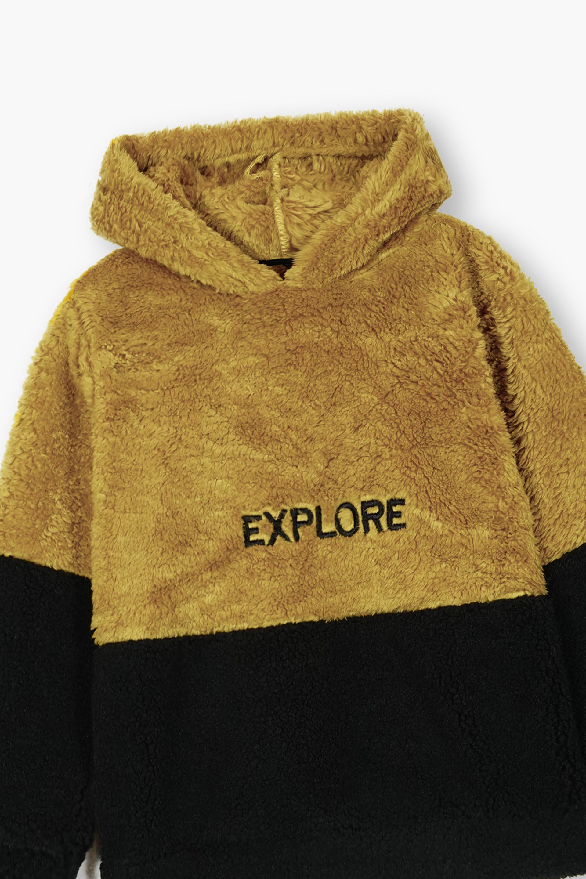 Give your child the perfect blend of warmth, comfort, and style with our premium Kids Fur Hoodie. Designed in a trendy two-tone mustard and black color block, this hoodie features a super-soft fur fleece texture that keeps kids cozy all winter long. The embroidered “EXPLORE” text adds a cool, adventurous vibe—perfect for little explorers who love staying active even in cold weather.