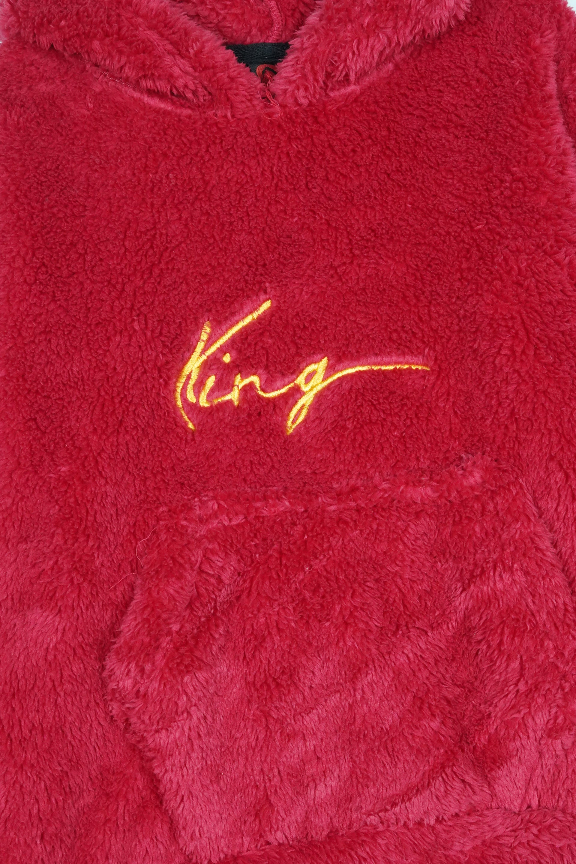 Give your child the perfect blend of warmth, comfort, and style with our premium Kids Fur Hoodie. Designed in a trendy red color block, this hoodie features a super-soft fur fleece texture that keeps kids cozy all winter long. The embroidered “KING” text adds a cool, adventurous vibe—perfect for little explorers who love staying active even in cold weather.