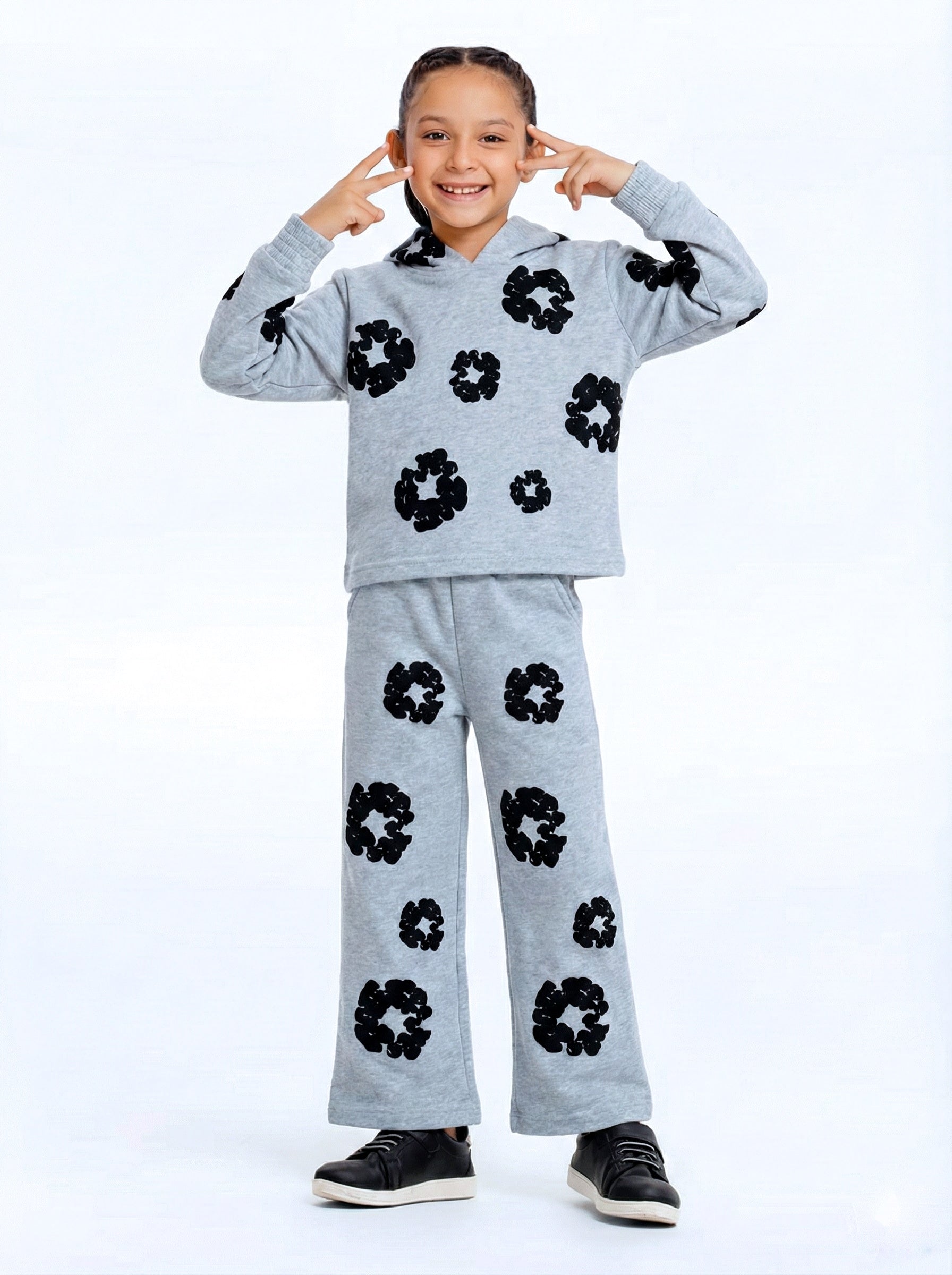 Give your little one the perfect blend of comfort, warmth, and style with our Kids Premium 100% Cotton Fleece Suit. Designed with ultra-soft cotton fleece, this winter set keeps kids cozy all day long while delivering a trendy street-style look. The cute black floral prints add a modern touch, making it an ideal choice for casual outings, playdates, and everyday wear.