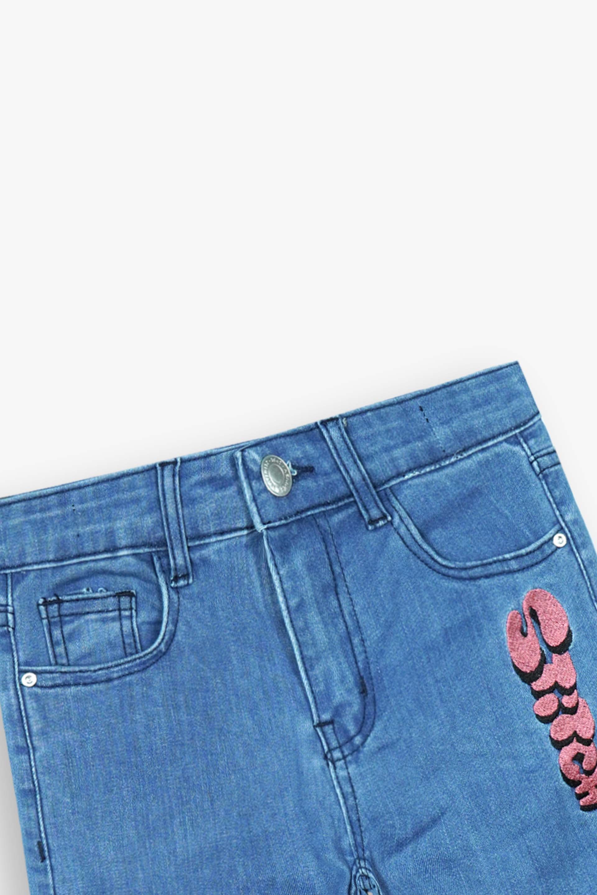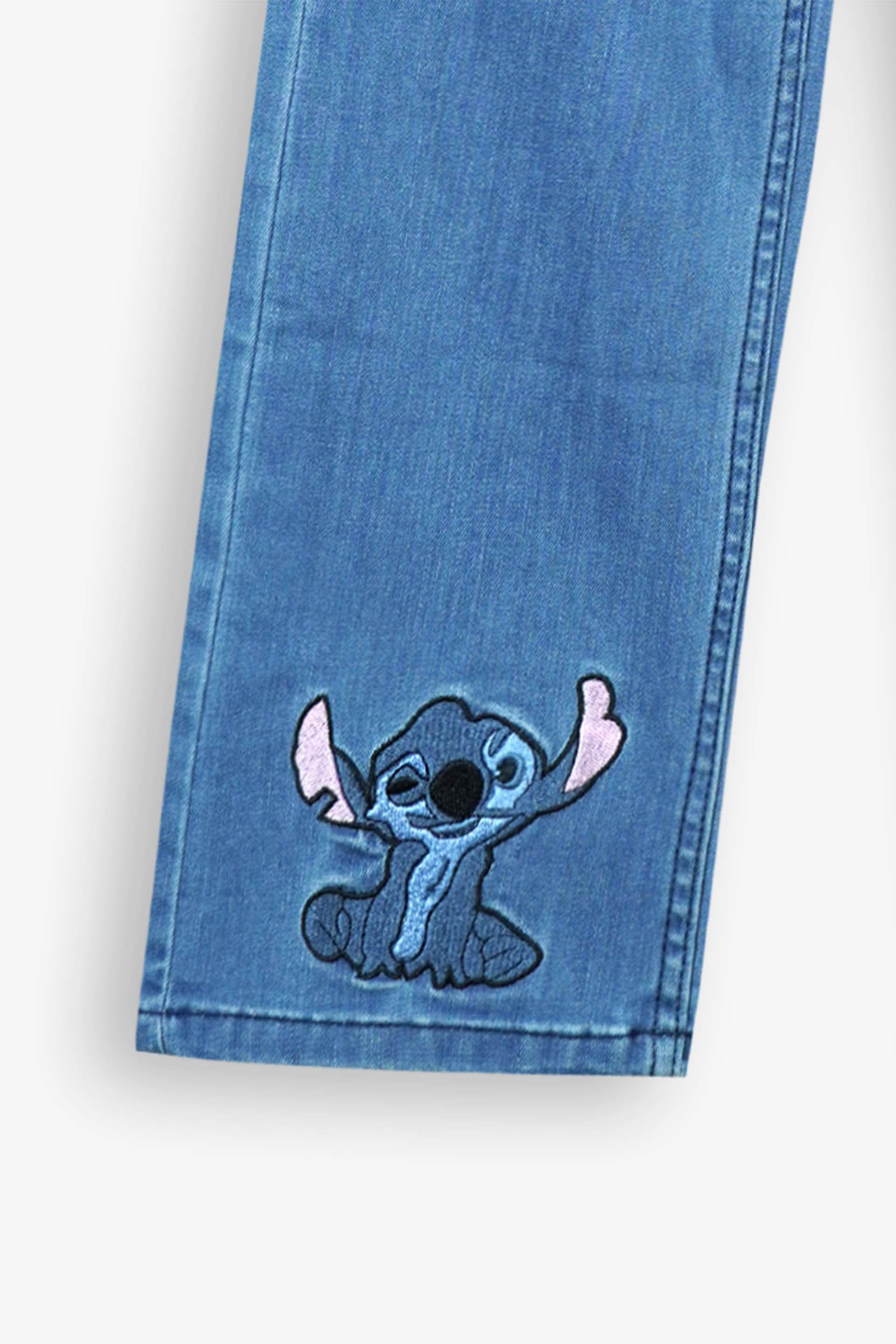 The standout feature is the adorable Stitch embroidery on the leg, paired with a fun “Stitch” text detail, making these pants a favorite for kids who love character-inspired fashion. With a button closure, belt loops, and side pockets, these denim trousers combine practicality with playful style.