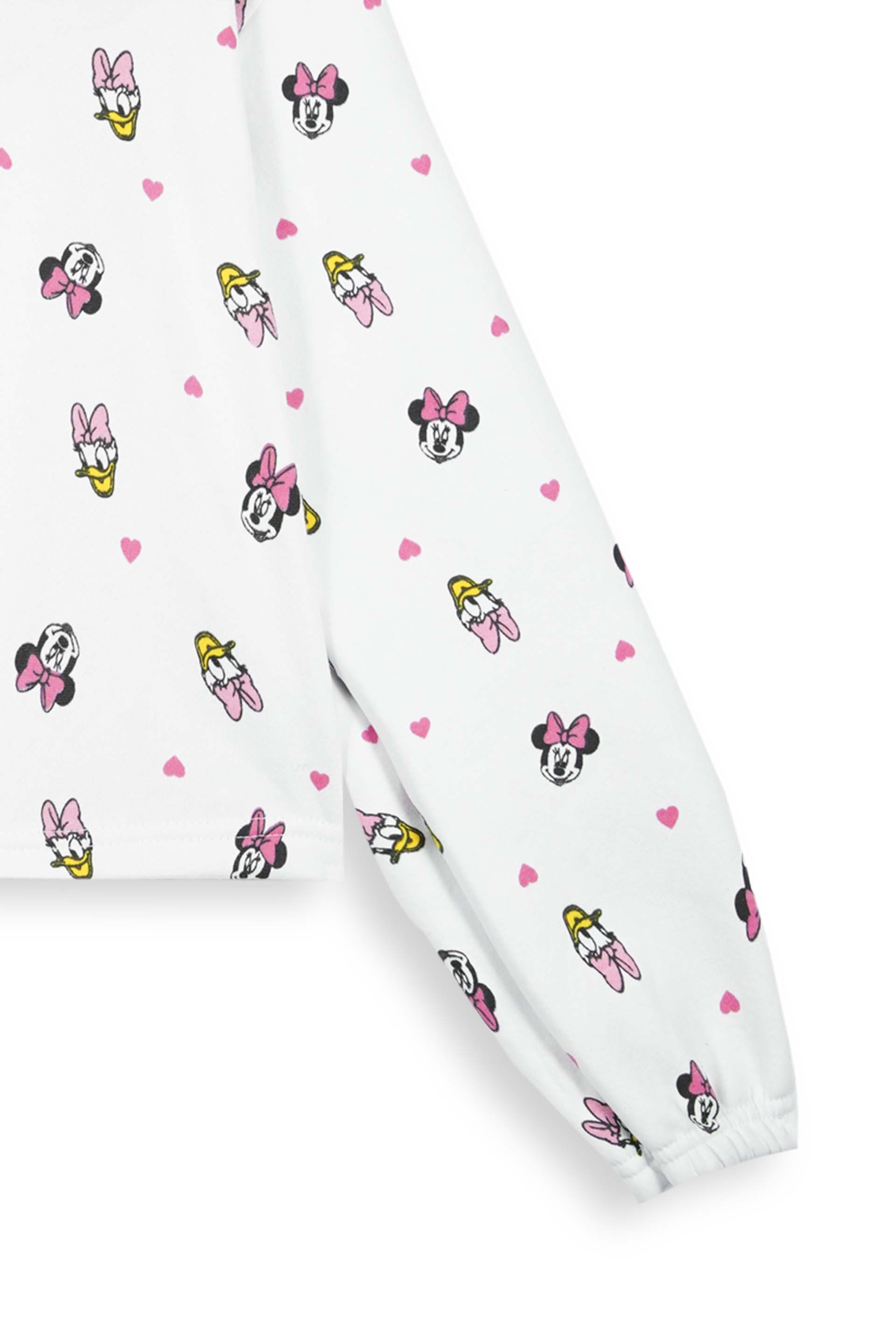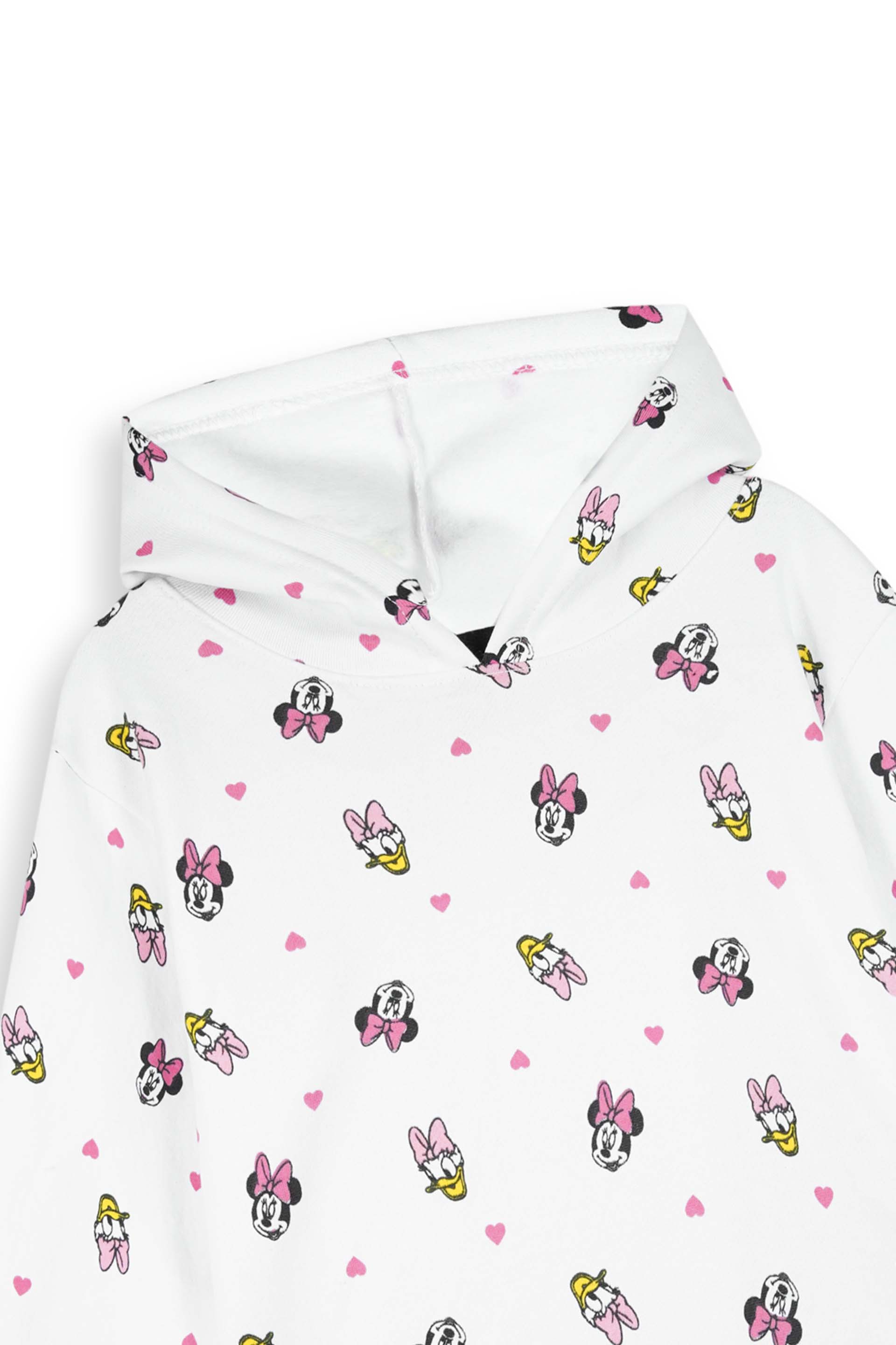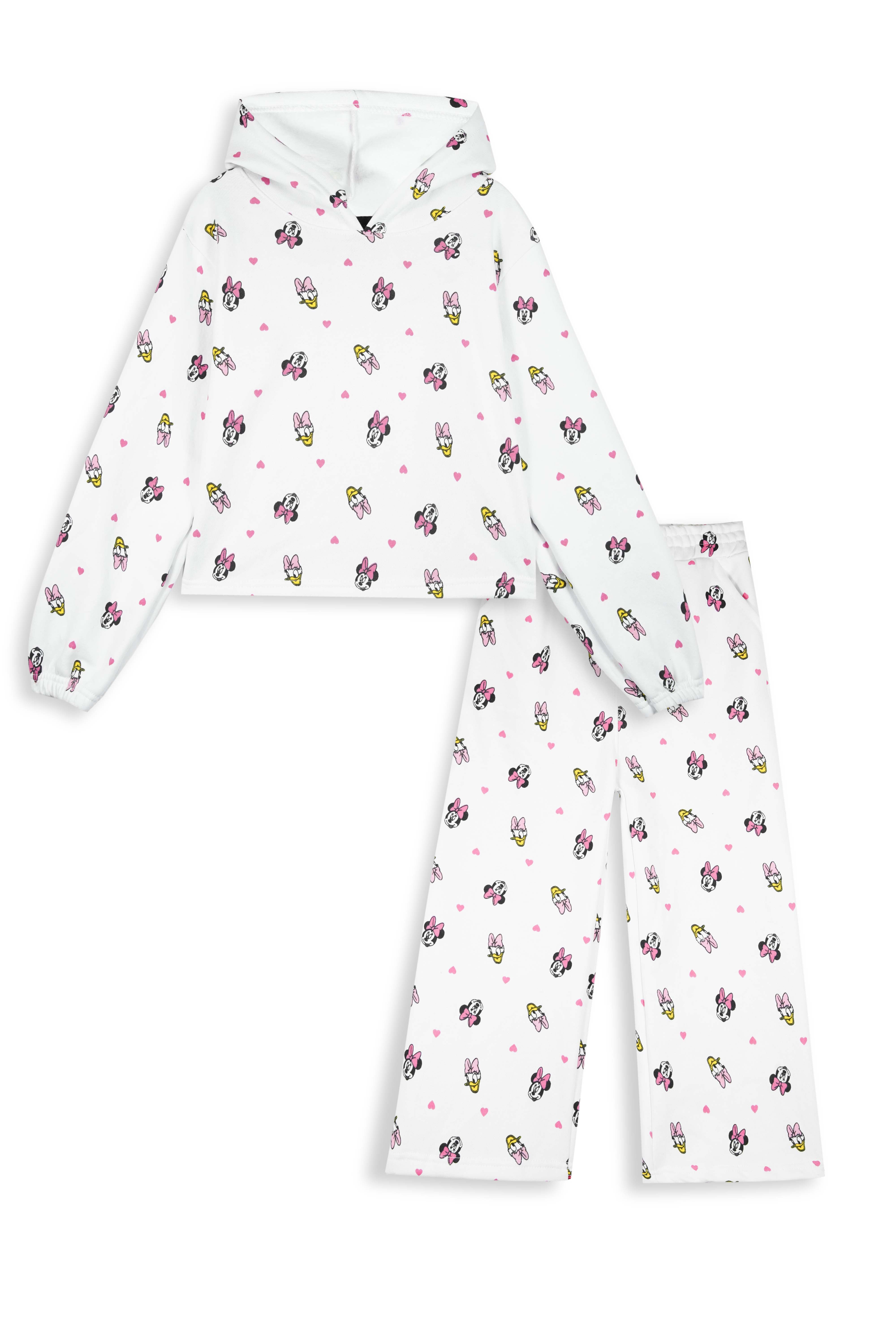 Add a playful touch to your little girl’s winter wardrobe with this Minnie & Daisy printed fleece suit, crafted from 100% cotton fleece for ultimate softness and warmth. Designed with a trendy short-body hoodie and stylish wide-leg trouser, this outfit blends comfort with a modern, cozy vibe — perfect for school days, playdates, or lounging at home.