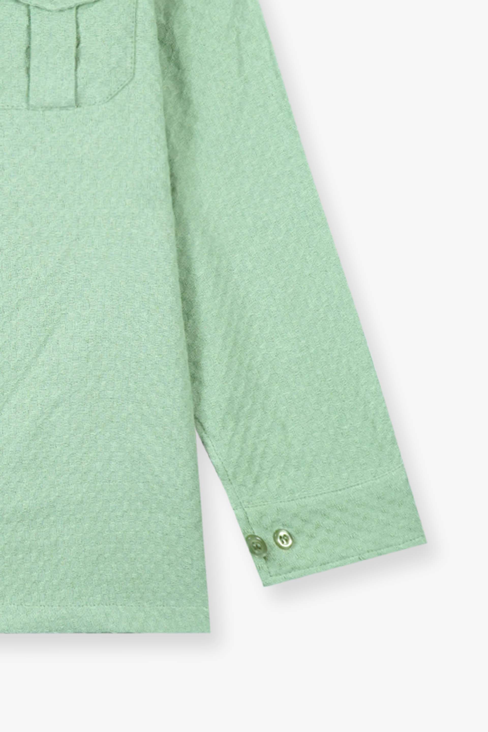 Elevate your Kid's seasonal wardrobe with our Mint Green Jacquard Cotton Suit, crafted from 100% pure cotton for unmatched comfort and durability. Featuring a soft jacquard weave with subtle texture, this suit is perfect for pre-winter and winter wear, offering warmth without compromising breathability.