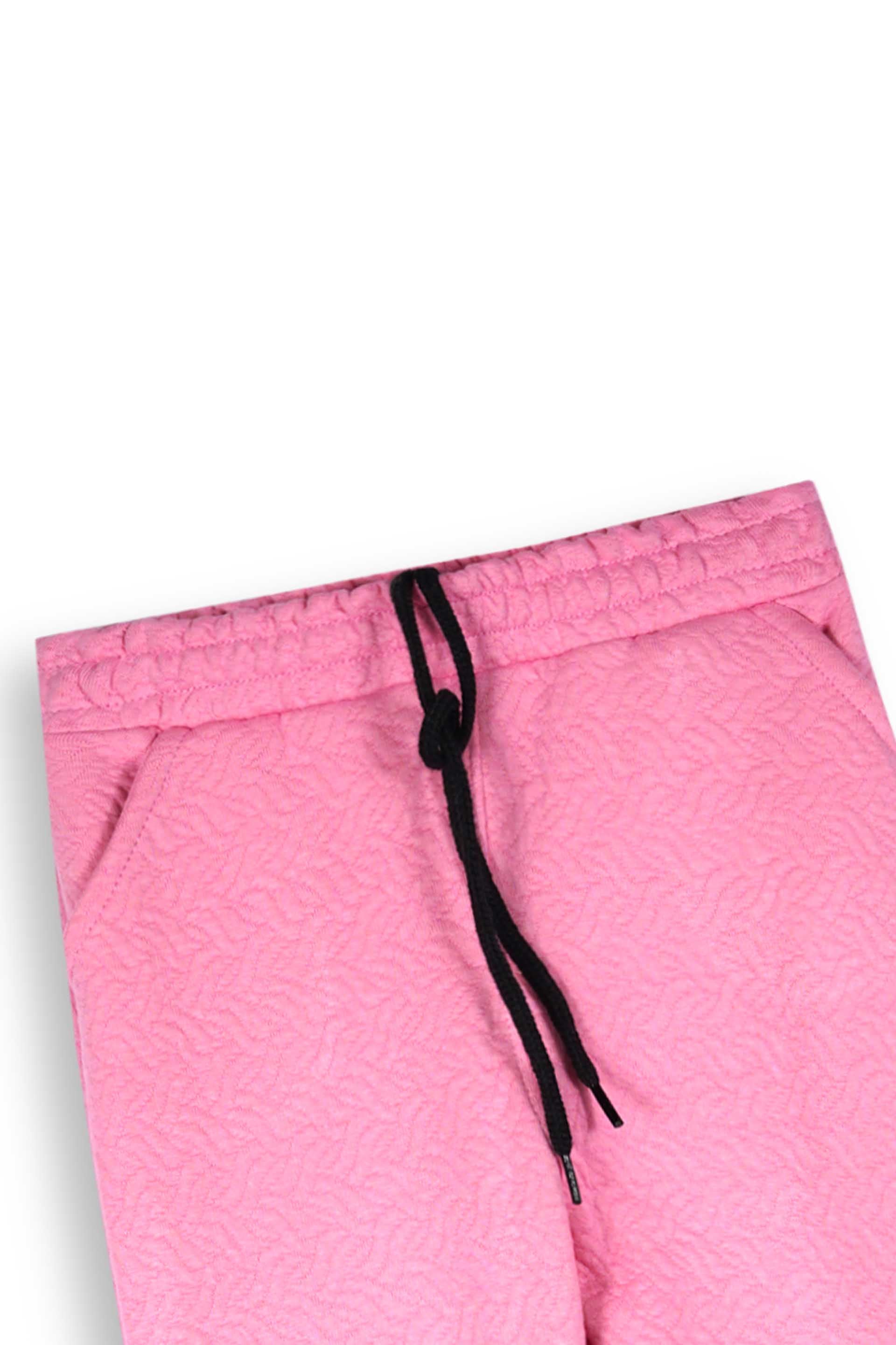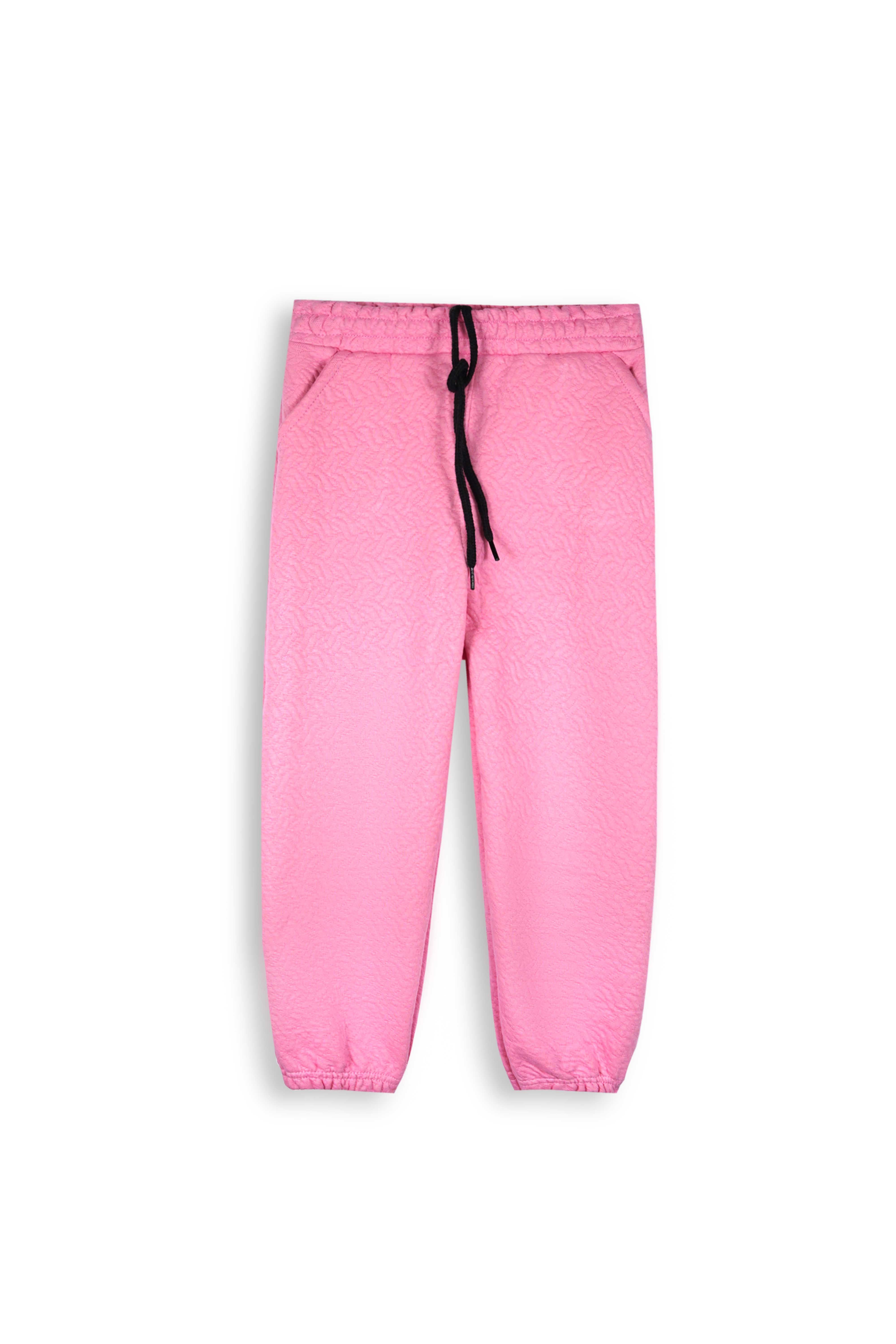 The top features a stylish neck slit for a modern touch and easy wear, while the matching jogger pants come with a drawstring waistband and elastic cuffs for a perfect fit. The textured quilted pattern gives this outfit a chic look, making it ideal for casual outings, school days, or cozy indoor wear.