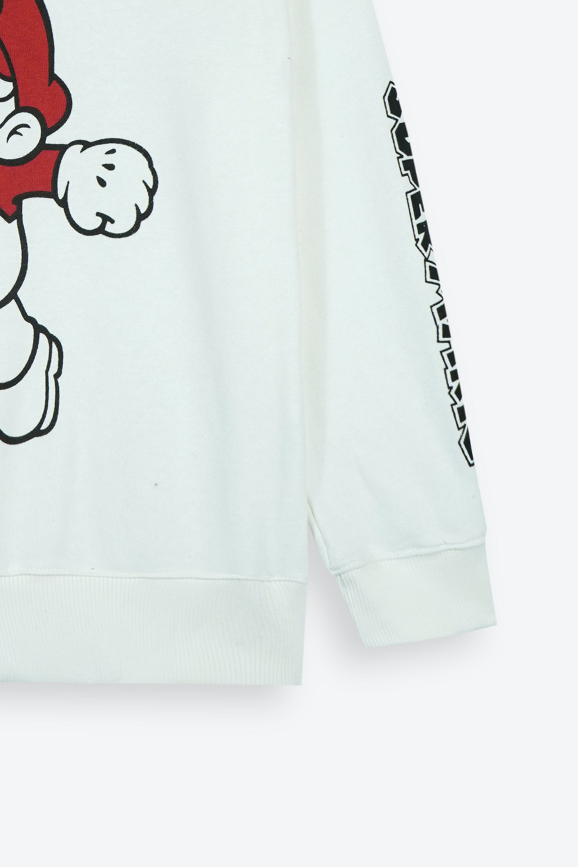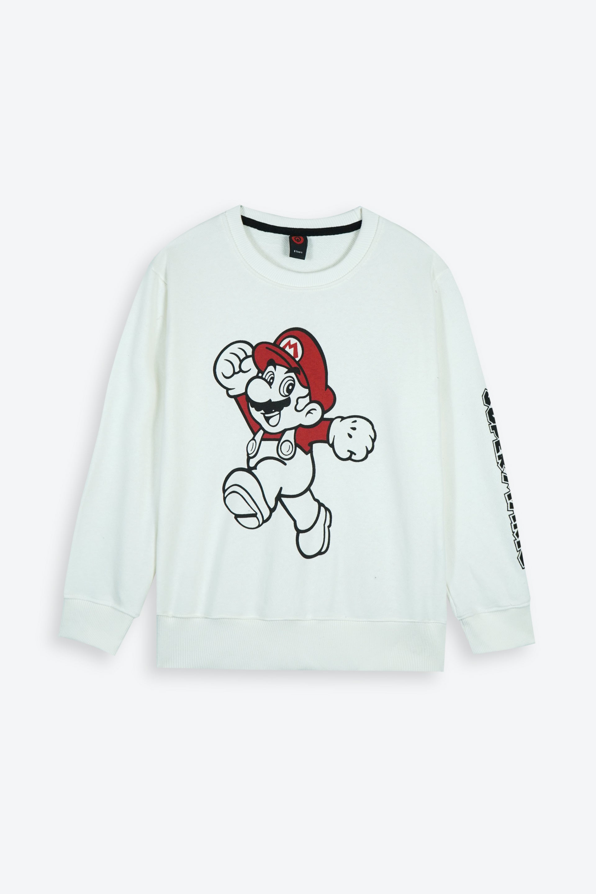 Sweatshirt Details: Classic crew neck design with a large Super Mario graphic print on the front and character logo text down the sleeve for extra style.